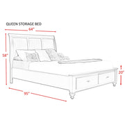 The Chatham Cherry Queen Storage Bed creates charming, sleek fashion in your bedroom. From its timeless sleigh panel headboard to its contemporary, low profile footboard, this transitional bed is an effortless addition to any room d- cor. - Platform Storage Bed - Sleigh Panel Headboard - Low Profile Footboard - Two Drawers in Footboard - Warm Cherry Finish - Bun Feet - Antique Finished Metal Knobs - Dust Proofing Layer on Bottom Drawers - Box Spring Not Required Pine/Plywood MDF/Particle Board Cherry Veneer 95 D x 64 W x 63 H, 140lbs. 1 Year Limited Manufacturer Warranty