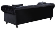 Elegant and eye-catching, the stunning Chesterfield Living Room from Meridian Furniture is the perfect addition to any space. Rich Velvet covers the plush, comfortable seat, padded with high-density foam and modern tufted design. Strength and beauty is guaranteed with a solid wood frame and legs. Features a nail head design on the arms and includes matching throw pillows.