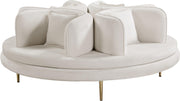 Bring untold elegance to your room with this Circlet velvet roundabout sofa. This exceptionally crafted piece of furniture is upholstered with soft cream velvet material that���s sumptuous to the touch. The four back cushions and matching pillows are comforting to the back as you and guests sit, and the gold iron legs make the sofa a sturdy addition to your room.