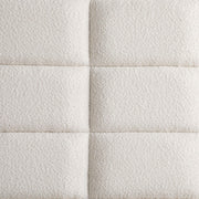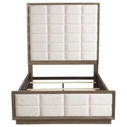 Elevate an inviting master or guest bedroom with the refined flair of this modern upholstered bed. It boasts a wooden frame in a taupe oak finish, creating a neutral palette. Cream upholstery is grid tufting, adding to the architectural appeal of this charming bed. The extra-tall headboard is paired with a low footboard, establishing an open, airy presentation in your bedroom. You'll love lounging against its foam cushioning and relaxing in comfort.