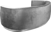 The perfect mix of grey velvet and gold stainless steel comes to life in your space with this Julian Grey Velvet Sofa. This bold grey velvet sofa comes upholstered in rich, sumptuous-to-the-touch velvet to make a fashionable statement in your space. The curved back design lends it a modish touch, and the gold stainless steel trim around its base adds to its glitzy appeal. Stage this sofa alone or with other pieces in the Julian collection.