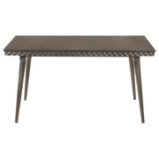Create an inviting, contemporary dining space with this stylish dining set. Anchored by a sleek, rectangular dining table and complemented by plush side chairs, this set combines comfort with modern aesthetics. The table and chairs feature a sophisticated molded trim, offering a touch of artistic flair, while the chairs add texture and warmth with their plush upholstery. Perfect for family meals or elegant dinners, the set brings a touch of refinement and character to any home.