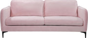 Transform your living space into a chic haven with this stunning Poppy Pink Velvet Sofa from Meridian Furniture. Rich pink velvet upholstery creates a soft, luxurious space for you to curl up with a book or in front of the TV on a rainy day, or just kick back and relax after a long day at work. Its plush back cushion offers ample support for your back while adding to the sofa's contemporary design, and matte black metal legs pull the piece together, making it a stylish choice for any room.