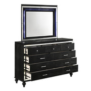 The Valentino bedroom collection is a stunning and elegant addition to any bedroom. The hardwood solids and veneers are finished with an embossed inlay and a beautiful silver, black, or white finish, adding a touch of glamour to the room. The collection includes a variety of pieces, all constructed with durability and functionality in mind. One of the standout of the Valentino collection is the inclusion of a lighted mirror and a lighted headboard. These provide a soft and ambient glow in the evening, creating a relaxing atmosphere in the bedroom. The MDF drawers feature English dovetail construction and full extension, providing ample storage space. The 80% PU/20% Cotton fabric adds a soft and comfortable touch to the collection, making it a pleasure to use every day.