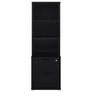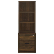 Enhance your home organization with this multifunctional bookcase, featuring a wood-inspired finish. Equipped with three open shelves and two drawers, it offers a mix of display and hidden storage options. The top drawer includes a secure locking mechanism for valuables, while an integrated dual USB charging outlet with USB-A and USB-C ports provides convenient power for phones and devices. Crafted from engineered wood with a scratch-resistant laminate veneer, this bookcase combines durability and modern functionality.