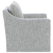 This swivel accent chair complements living room décor with its neutral fabric and streamlined silhouette. Perfect as lounge seating or an occasional chair, it offers a gentle, 360-degree swivel for relaxed conversation or quiet reading. Its plush seat and transitional flair enhance the comfort and style of your home, blending subtle elegance with everyday versatility.