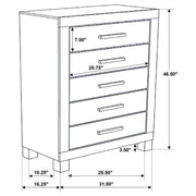 Upgrade the warmth and tranquility of your bedroom with this impressive transitional 4-piece bedroom set featuring storage bed, nightstand, dresser, and mirror that brings a blend of classic style and modern conveniences. Each piece is crafted with a full matte rustic golden brown finish that includes beautiful wire brushed wood grain detail. The platform-style bed features an imposing headboard and two-drawer storage footboard. The drawers in the footboard and on each case piece are crafted with wooden pull handles. Solid block legs on each of the pieces, save for the mirror, add the final detail to this magnificent bedroom set.