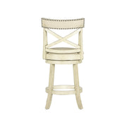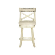 The New Classic York 24" Swivel Counter Stool features a 360° rotation to either side, allowing you to easily engage in conversation. This farmhouse style white Pub Stool is crafted of solid wood with flared legs and a ring footrest at the base for comfort and stability. 100% polyester natural fabric cushion seats and X Back are set off by the nailhead trim on the curved shoulder rest of the York Bar Chair. Versatile use for Kitchen Islands, Bars, Pub Tables, Game Rooms. The Aberdeen Counter Height Stool is also available as a 29" Bar Swivel Stool. Easy to assemble, Smooth swivel action, classic style and made-to-last quality make this chair a standout!