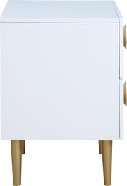Watch your d?�cor cascade to new heights when you bring home this Zayne night stand. It features a white finish that sets an instant contemporary vibe in your space. Its brushed gold metal legs and handle add a sophisticated slant to the piece���s design, ensuring it���s a simple and easy fit with other modern pieces. Pair this unit with other items in the Zayne collection for a seamless presentation in your room.