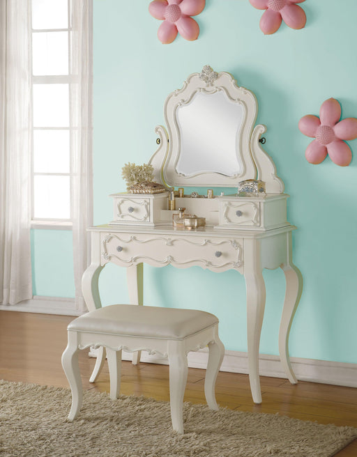 ACME Edalene Vanity & Mirror, Pearl White (1Set/3Ctn), Vanity Desk: 39" x 18" x 31"H, Jewelry Mirror: 36" x 12" x 32"H, 91lbs. Features: - Vani...