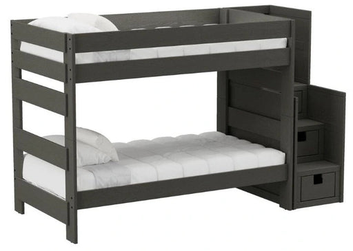 Elements International Cali Kids Twin over Twin Bunk Bed with Staircase in Sleek Gray