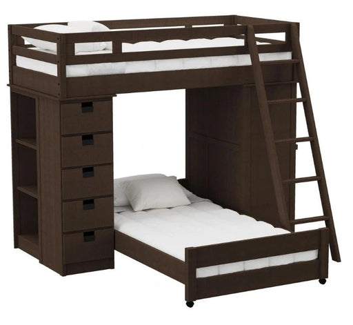 View full detailsElements International Cali Kids Twin Over Twin Bookcase Loft Bed in Brown