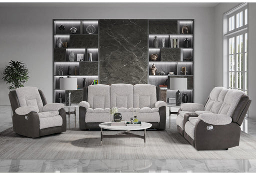 View full detailsU4377 GREY/BROWN RECLINING SOFA WITH DROP DOWN TABLE/CONSOLE RECLINING LOVESEAT/GLIDER RECLINER