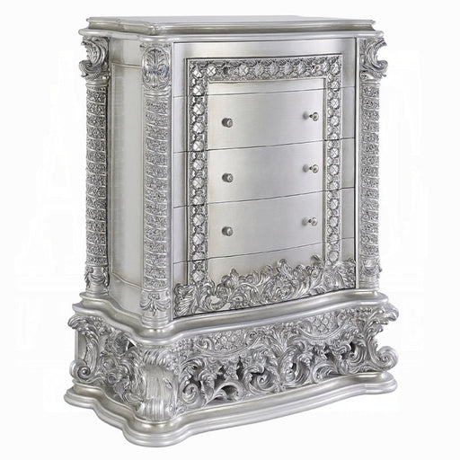 Luxurious style, sophisticated charm, and lustrous finishes are all included in the Vanaheim Bedroom Collection. Extravagant scroll floral design w...