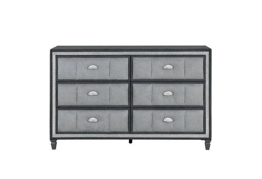 The Vanna Dresser combines practical storage with plush elegance. Fully upholstered in two-tone grey fabric and adorned with crystal glam accents, ...
