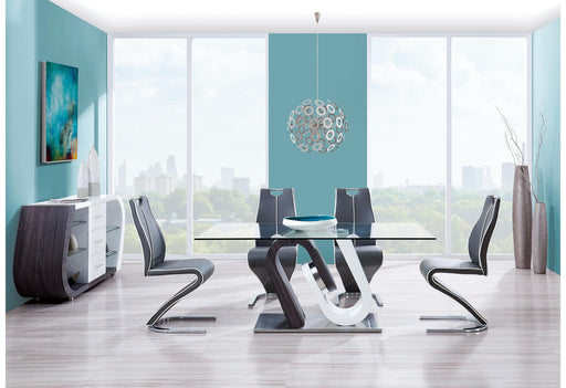 Looking to make an instant style statement then this clear glass top dining table is for you! Design elements include a two toned geometrically des...