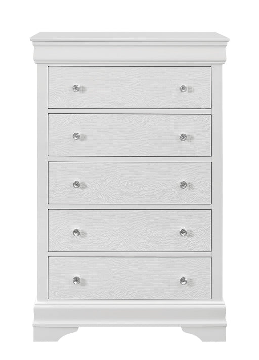 Your sleeping space should dazzle with the Pompei Chest by Global Furniture. Featuring spacious drawers, crystal inspired hardware, and textured de...