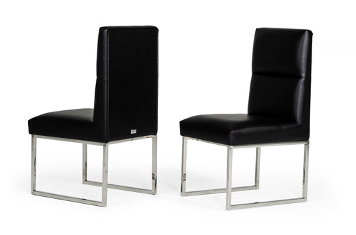 The Carla Dining Chairs have a minimalistic modern look that is sure to pair with any contemporary home. Stainless-steel accents and black vegan le...