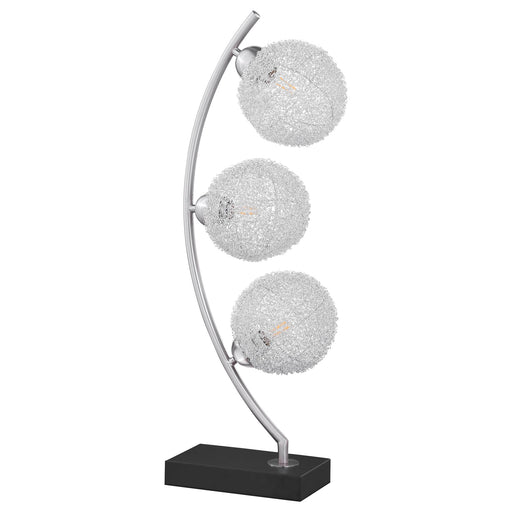 Graceful silhouetting pairs with a trio of elegant wire frame orb shades in a modern table lamp. Designed to make an impact on a console or side ta...