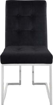 Dine in sophistication and elegance when you're seated in this Alexis black velvet dining chair. This pretty chair has a modish look that's suitable for nearly any contemporary decor theme. The base is made from stainless steel and has been given a rich chrome finish that lends it added modern panache. The seat is thickly padded and welcoming to the body as you sit through mealtime and converse with family and friends. Plush black velvet upholstery with tufting on the back and seat cushions finishes off the design on a svelte note.