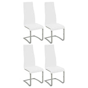 Sleek and sophisticated, this high-back side chair features a modern silhouette wrapped in crisp white leatherette. The ergonomic design provides excellent back support, while the armless, cantilever base offers a floating effect with retro flair. A polished chrome frame enhances the contemporary feel, making it an ideal complement to glass or high-gloss dining tables in modern interiors.