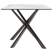Gorgeous sintered stone brings depth and dimensionality to a modern rectangular dining table. A true centerpiece in your kitchen or dining room, it boasts an enchanting white mirage finish on its table top, offering multi-tonal allure with a hint of glam. The modern design includes a bold sculptural base that provides support with its starburst motif. The base receives a glossy black finish, offering a slick, sophisticated touch of sculpted elegance. Choose seasonal or timeless table linens and enjoy delicious meals with family and friends.