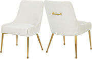 Elegance invades your dining room when you add this Ace velvet dining chair to the mix. This beautiful chair features the bells and whistles you need to take your dining room to the next level decoratively. The chair is outfitted in soft cream velvet upholstery with a pleated design for added textural appeal. Polished gold legs with ball feet and a matching gold handle on the back round out the design on a stylish note.