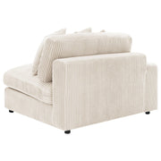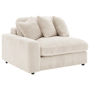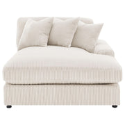 Bring retro-inspired elegance to your contemporary seating environment with this modern reversible sofa and oversized chaise. Upholstered in vintage-like wide corduroy fabric, it offers a soft texture in elegant fog or sand tones. The two-piece design features reversible cushions, wide track arms, black legs, and non-slip grips for stability. Experience endless comfort with premium down-like filled cushions and pillows.