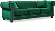 The Bowery Collection by Meridian Furniture. Features beautifully designed tufted velvet upholstery with custom wood legs and a nail head trim. This collection is guaranteed to be the highlight of any home. Throw pillows included.