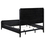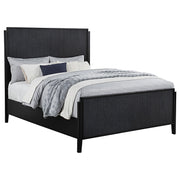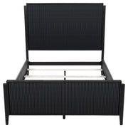 Instill a hint of drama in your bedroom with the rich black finish of a modern wooden bed. Designed to stand out, it features a timeless silhouette with a tall headboard and low footboard to create an open, airy look in your bedroom. The black finish is bold and deep, with wire brushing that creates a touch of texture to highlight fluted texturing that create wonderful dimensionality. The bed includes matching black rails for a tailored, cohesive look and feel. Slats and support legs are included, offering peace of mind for a stable night's sleep.