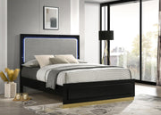 Modern luxury with a clean look offers a perfect fit for updated bedrooms as the bed anchors a sleek primary suite or guest bedroom. Wood and wood products construct a bed with clean lines and an extra tall headboard that stands out to be noticed. Tech features fold LED strip lighting into its headboard, with a touch-activated light button on its front panel. This bed offers simplicity with sleek elegance, as straight legs and a headboard insert join a dimensional design element on its footboard. Choose this bed for its versatility and convenience, making a bedroom a haven for both sleep and serenity.