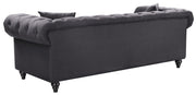 Elegant and eye-catching, the stunning Chesterfield Living Room from Meridian Furniture is the perfect addition to any space. Rich Linen covers the plush, comfortable seat, padded with high-density foam and modern tufted design. Strength and beauty is guaranteed with a solid wood frame and legs. Features a nail head design on the arms and includes matching throw pillows.