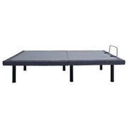 A contemporary California king adjustable bed allows you the freedom of precise positioning to create the relaxing sleep haven of your dreams. Dark gray upholstered rails add a polished touch while six legs adjust in height to suit any bedroom. The bed includes a wireless remote control with pre-set zero gravity, anti-snore, flat and memory positions, in addition to full range head and foot recline. The adjustable bed base is designed for optimal comfort and support, perfect for everything from relaxing with a movie to soothing aches and pains with the position that feels best for you. A stand-alone headboard (not included) may be mounted to the base to create a complete bedroom ensemble and the bed base features power-down functionality in the case of a power failure.