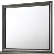 Crown Mark Regata Mirror in Grey B4650-11. Create your own contemporary sanctuary with this collection of bedroom furniture. Each piece pairs shimmering silver accents with elegant case designs to produce a look that is both modern and glamorous, but not over the top. Furthermore, each bed features footboard storage to make your bedroom just that more functional. Finally, every piece in this collection is available in either a grey or black finish.