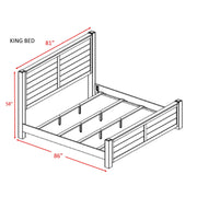 This Dawson Creek King Panel Bed features a sultry semi-gloss, deep chestnut lacquer finish. This carefully-crafted bed features clean lines throughout, sturdy panels in the headboard and footboard as well as light distressing to complement this warm and cozy look - Deep chestnut lacquer Custom select solid hardwoods and veneers Corner block reinforcements with wood cleats and screws provides solid construction Lightly distressed, simple, paneled headboard Requires mattress and box spring Solid hard wood; MDF; Plywood; Acacia Veneers 89 D x 81 W x 58 H, 154lbs. 1 Year Limited Manufacturer Warranty