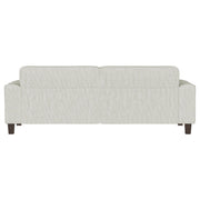 Create a stylish and infinitely comfortable and inviting living space with a modern sofa. Its timeless stance features wide track arms that pair perfectly with plush cushions for an indulgent seating experience. Great for game days, entertaining, or evenings at home, the sofa features plush upholstery with corduroy inspired texture that adds depth and dimension. Back cushions are plush and tufted, offering a grid pattern that's clean and refined. Tapering feet complete the look, offering height that creates an airy finishing touch perfect for modern living.