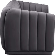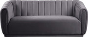 Casual meets elegant in the design of this Dixie velvet sofa. Relax, unwind, and take a load off whileyou'rere kicked back in this handsome seating option. Deep channel tufting adds an upscale touch to the unit���s soft grey velvet upholstery while giving it a dimensional look. Pair this piece with other items in the Dixie collection for a complete and seamless look in the living room or den.