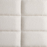 Approachable style infused a modern four-piece bedroom set that centers on a striking upholstered bed. In cream with grid style tufting, the bed presents with a tall headboard and low footboard, creating an open, airy look and feel. A eight-drawer dresser includes a framed mirror, creating a stylish and functional top perfect for everything from morning rituals to decor that adds personality. The set adds a two-drawer nightstand with a shelf, creating ample space for personal items, decor, and a reading lamp at your bedside. The set is complete with Taupe oak wood finish that's soft and neutral to complement a wide variety of linen and decor choices.