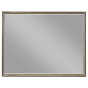 Approachable style infused a modern four-piece bedroom set that centers on a striking upholstered bed. In cream with grid style tufting, the bed presents with a tall headboard and low footboard, creating an open, airy look and feel. A eight-drawer dresser includes a framed mirror, creating a stylish and functional top perfect for everything from morning rituals to decor that adds personality. The set adds a two-drawer nightstand with a shelf, creating ample space for personal items, decor, and a reading lamp at your bedside. The set is complete with Taupe oak wood finish that's soft and neutral to complement a wide variety of linen and decor choices.