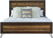 Elements Cruz King Panel Bed in Brown MBCZ100KB. The Cruz bedroom collection, will instantly update any bedroom from stale to sustainable comfort. The warm finished pine wood headboard provides a sense of rustic flair and modern variety with black accent hardware. This collection imparts sophistication to naturalist style with its angled legs and slat headboard. Crafted from reclaimed pine, it shows the knots and natural imperfections that make each piece subtly unique.