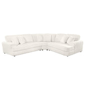 Sink into luxurious comfort with this spacious 3-piece sectional sofa, designed to transform your living area into a cozy retreat. Upholstered in soft, ivory wide corduroy, the sectional offers a plush, fur-like texture that invites relaxation and warmth. With its generous seating capacity, it’s perfect for family gatherings or entertaining guests, providing ample room for everyone. Featuring attached seats for a streamlined look and reversible back cushions for easy maintenance, this sectional balances style and practicality. The black legs add a modern touch, complementing the elegant ivory corduroy and making it an ideal centerpiece for any large, stylish living space.