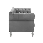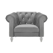 Introducing the Emma living room set - the perfect combination of style and comfort for your home. This set includes a sofa, loveseat, and chair, all featuring a stunning crystal tufted back that adds a touch of glamour to any space. Made with 100% polyester, these pieces are durable and easy to maintain. The set is available in three sleek colors - blue, black, and gray - so you can choose the one that best matches your decor. Upgrade your living room with the luxurious Emma set and enjoy hours of relaxation and entertainment.