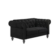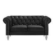 Introducing the Emma living room set - the perfect combination of style and comfort for your home. This set includes a sofa, loveseat, and chair, all featuring a stunning crystal tufted back that adds a touch of glamour to any space. Made with 100% polyester, these pieces are durable and easy to maintain. The set is available in three sleek colors - blue, black, and gray - so you can choose the one that best matches your decor. Upgrade your living room with the luxurious Emma set and enjoy hours of relaxation and entertainment.