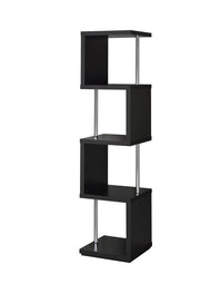 Go with the flow in a modern space with an edgy, artistic look. This four-tier bookcase is a great option for a compact space. Enjoy a modular, geometric silhouette and a choice of finishes. Steel supports reinforce shelving that hosts books and decor. Choose from finishes that intensify the attitude of your custom space.