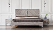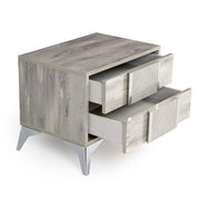 Taking on a rustic look, this light grey colored Nova Domus Alexa Italian Modern Grey Nightstand features a gloss finish. It offers 2 spacious drawers to stow all your bedroom essentials, each of this is adorned with a metal accent that also serves as pulls. Wood markings on the surface made its streamlined look even better. Place a stylish table lamp, an old-fashioned clock, and potpourri to complete your retro modern bedroom.