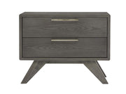 Adding function and beauty to your bedroom is the dainty Nova Domus Soria Modern Grey Wash Nightstand. It features two ample-sized drawers that keep things within your reach while in bed. Wood streaks adorn the grey wash frame that lends an enigmatic look. Stainless steel handles also serve as an accent. This 2-drawer modern nightstand with tapered legs is a great investment, as you can use it for other purposes, too.