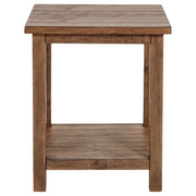 Blending rustic warmth with functional design, this end table enhances your living room with cozy style. Built from pine wood and reinforced with engineered wood, it features a square silhouette suited for farmhouse or casual interiors. Its open lower shelf offers the perfect spot for décor or storage. Place it as a side table to keep must-haves within reach and bring a relaxed charm to any seating area