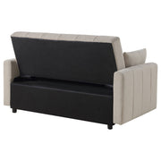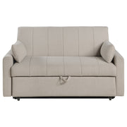 This modern sleeper sofa combines both style and function, featuring luxurious boucle fabric upholstery for a textured, inviting feel. Perfect for small spaces or multi-purpose rooms, the sofa showcases clean lines and vertical channel tufting, adding a contemporary touch to your home. Effortlessly transform it into a bed with a smooth pull-out mechanism, offering a comfortable sleeping area for overnight guests. The plush foam-filled cushions ensure maximum comfort, while built-in casters on the sleeper section make setup easy. With its versatile design and cozy boucle fabric, this sofa is a seamless addition to any living room or guest bedroom.
