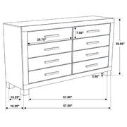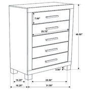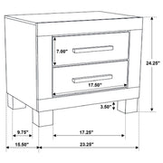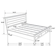Upgrade the warmth and tranquility of your bedroom with this impressive transitional 4-piece bedroom set featuring storage bed, nightstand, dresser, and mirror that brings a blend of classic style and modern conveniences. Each piece is crafted with a full matte rustic golden brown finish that includes beautiful wire brushed wood grain detail. The platform-style bed features an imposing headboard and two-drawer storage footboard. The drawers in the footboard and on each case piece are crafted with wooden pull handles. Solid block legs on each of the pieces, save for the mirror, add the final detail to this magnificent bedroom set.