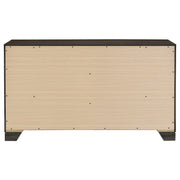 Introduce gracious style in an approachable, tailored bedroom suite with this transitional six-drawer dresser. Designed to augment clothing and accessory storage, it's built with six roomy drawers, all complete with center metal glides for smooth performance. Its exterior features engineered wood and laminate construction, creating durability and reliability. Its case is encased in mitered trim and stands on singular block legs, adding a sense of precision and character. Bar handles complete the stylish look while its wide top allows for a curated selection of decor brings a personal touch.